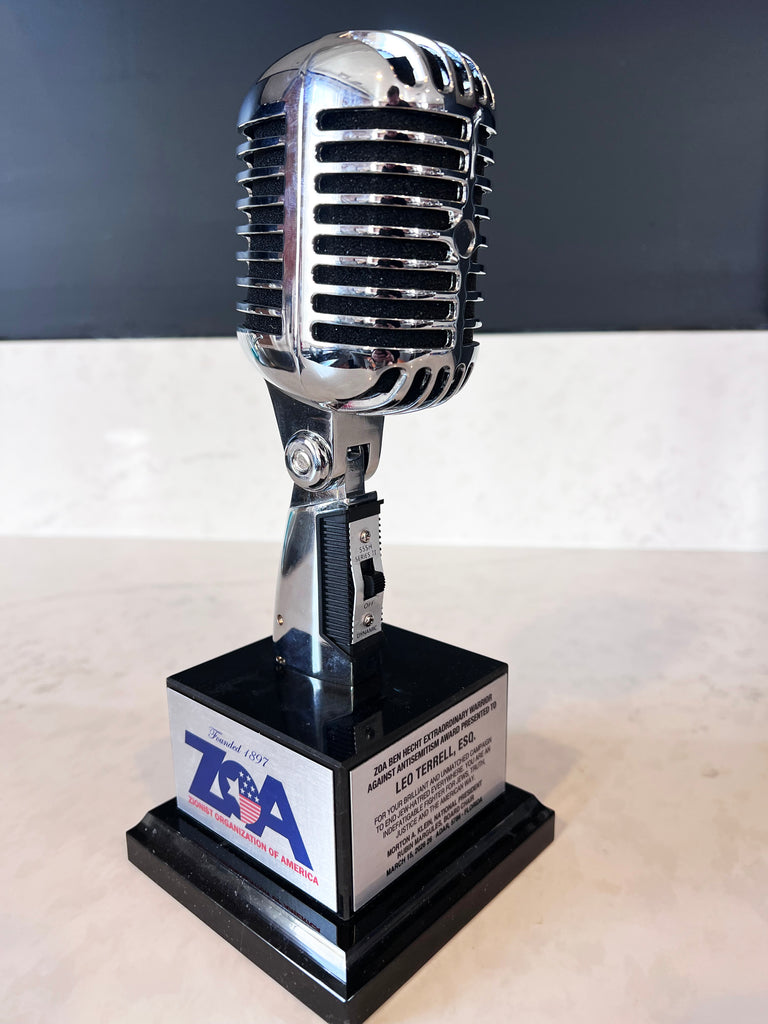 4.25" W x 10.5" H Overall Size - REAL Vintage CHROME Metal Microphone Used on our Awards with SOLID BLACK MARBLE Base.